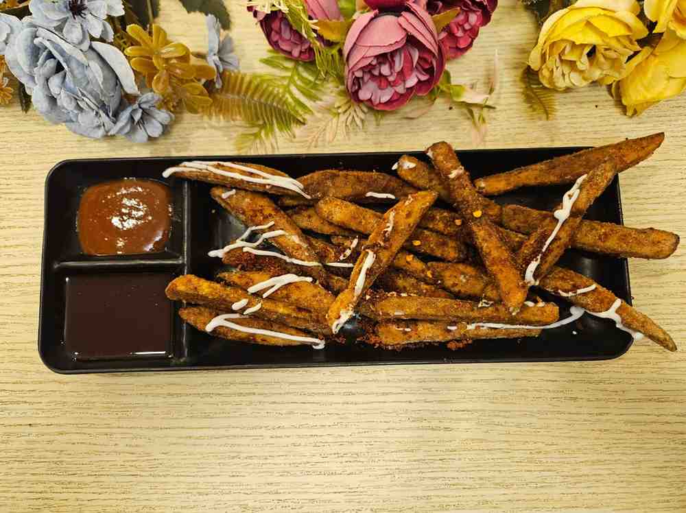 Crispy potato fingers glazed with sweet and spicy honey-chilli sauce.