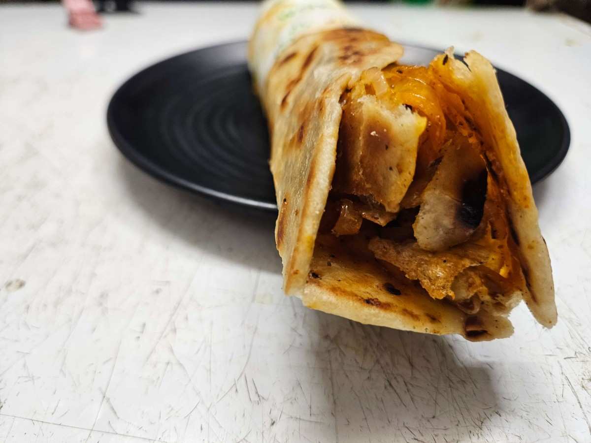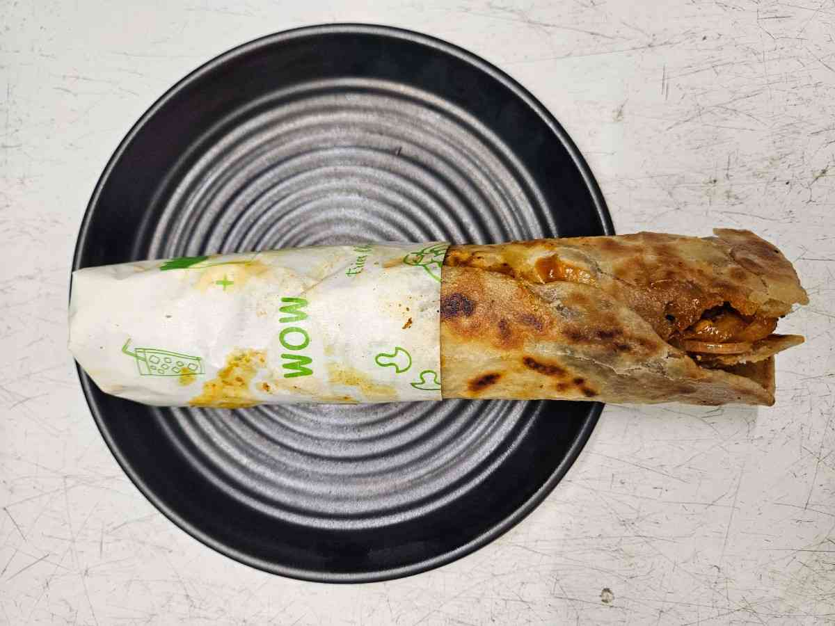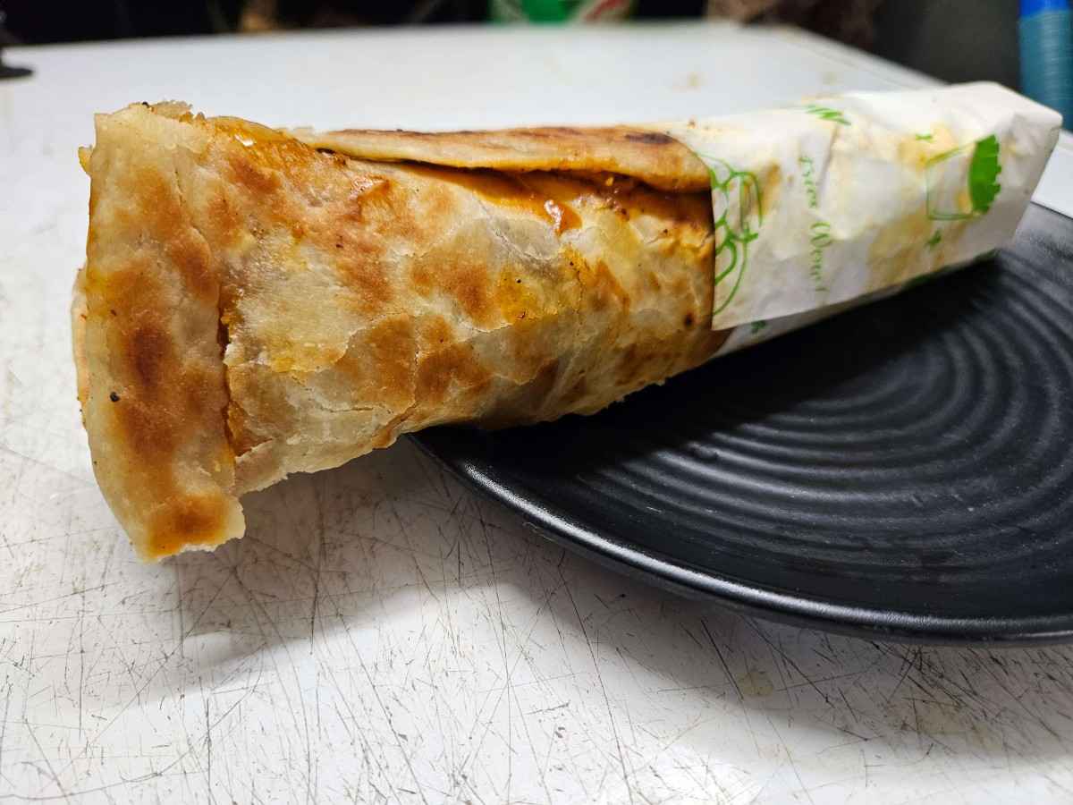 Soft paratha roll filled with juicy spiced chicken and fresh veggies.