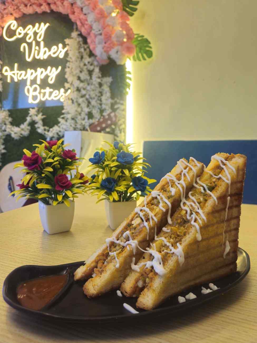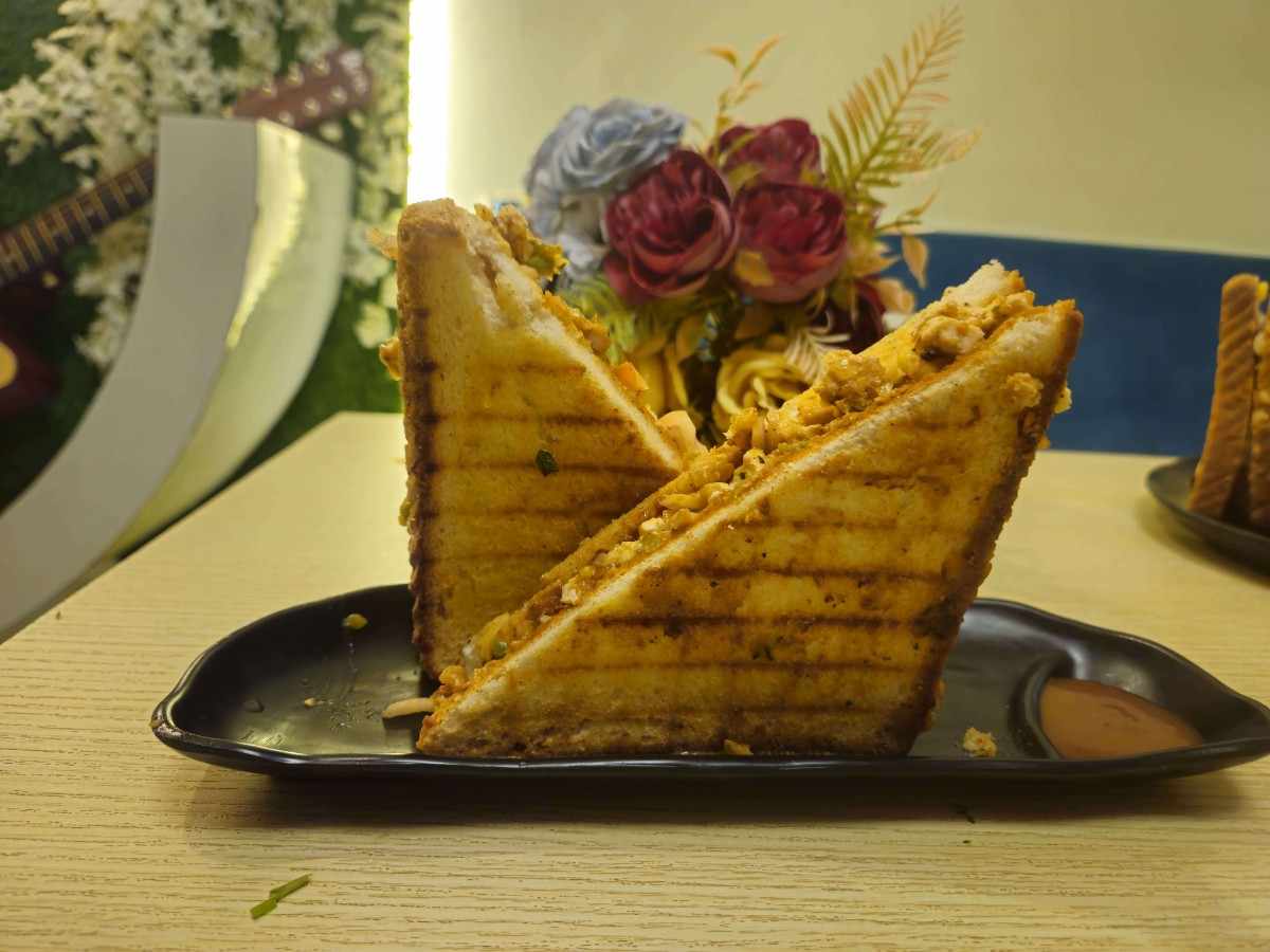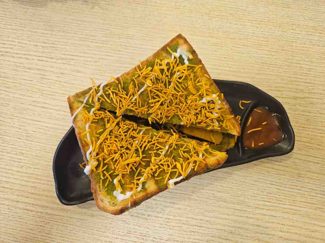 Mumbai-style pav bhaji stuffing grilled between buttery bread for a spicy, desi twist.