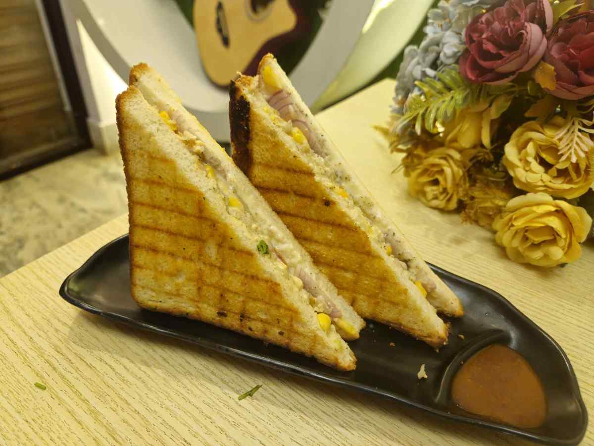 Creamy, cheesy sandwich with onion and sweet corn for a crunchy and smooth blend.