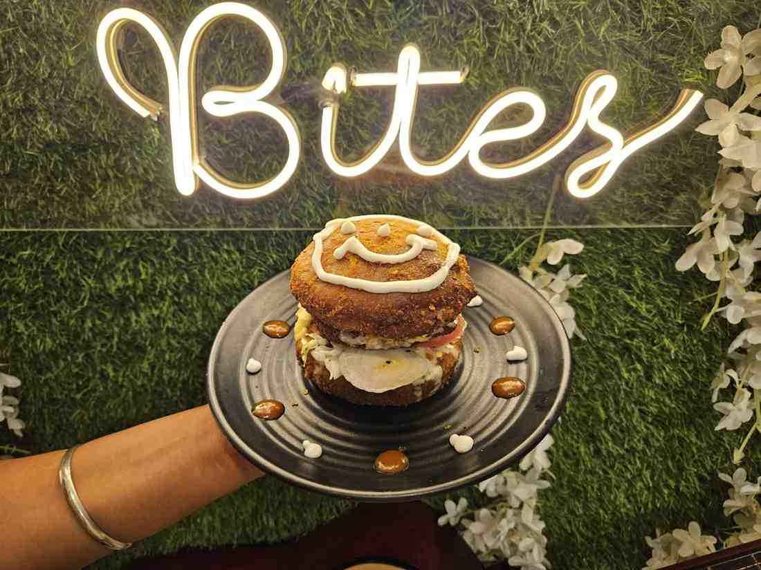Crispy Kurkure chicken patty with layers of melted cheese for a crunchy, creamy bite.