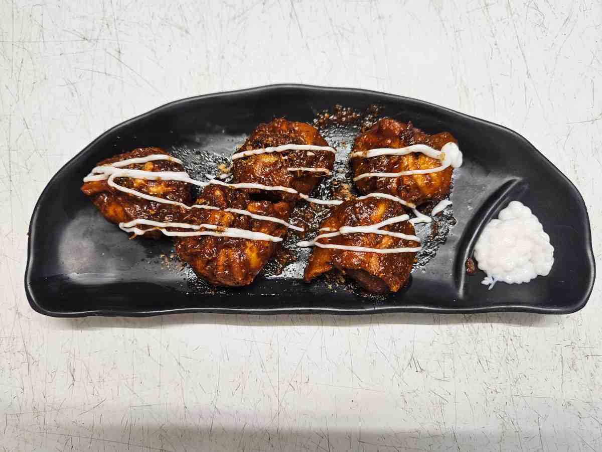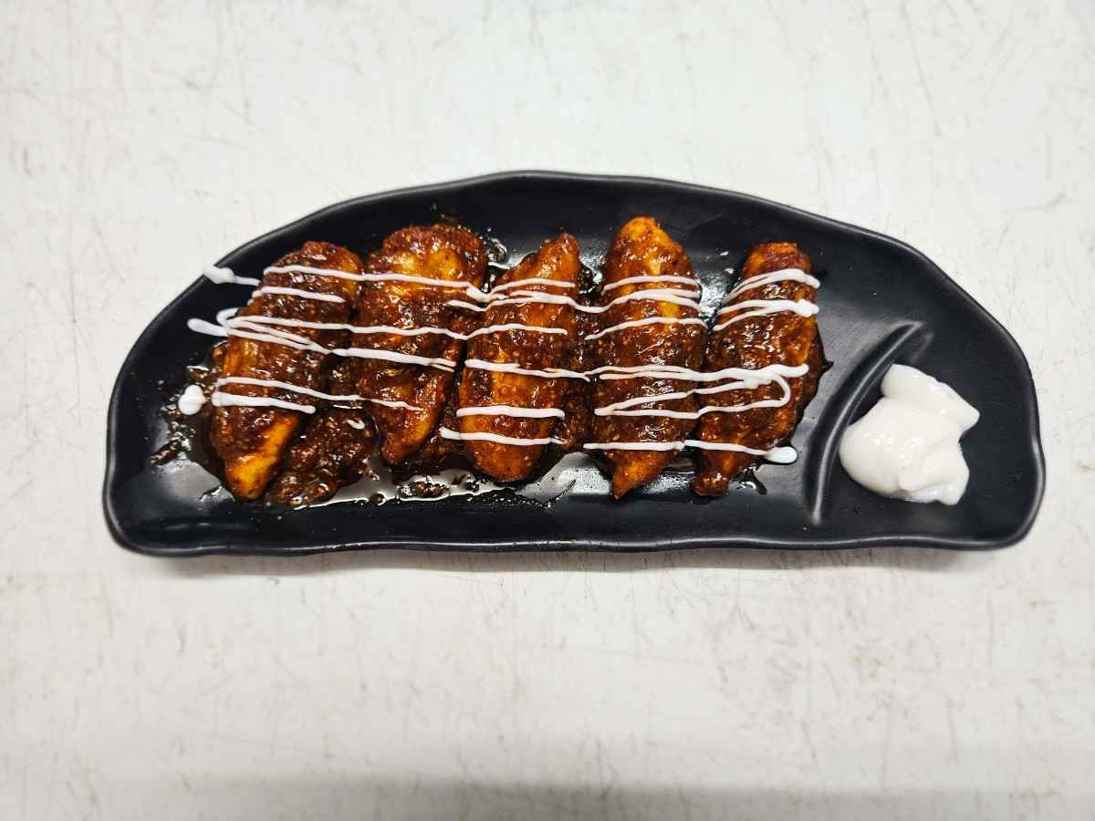 Smoky, spicy, and tender chicken wings glazed in a hot Indo-Chinese sauce.