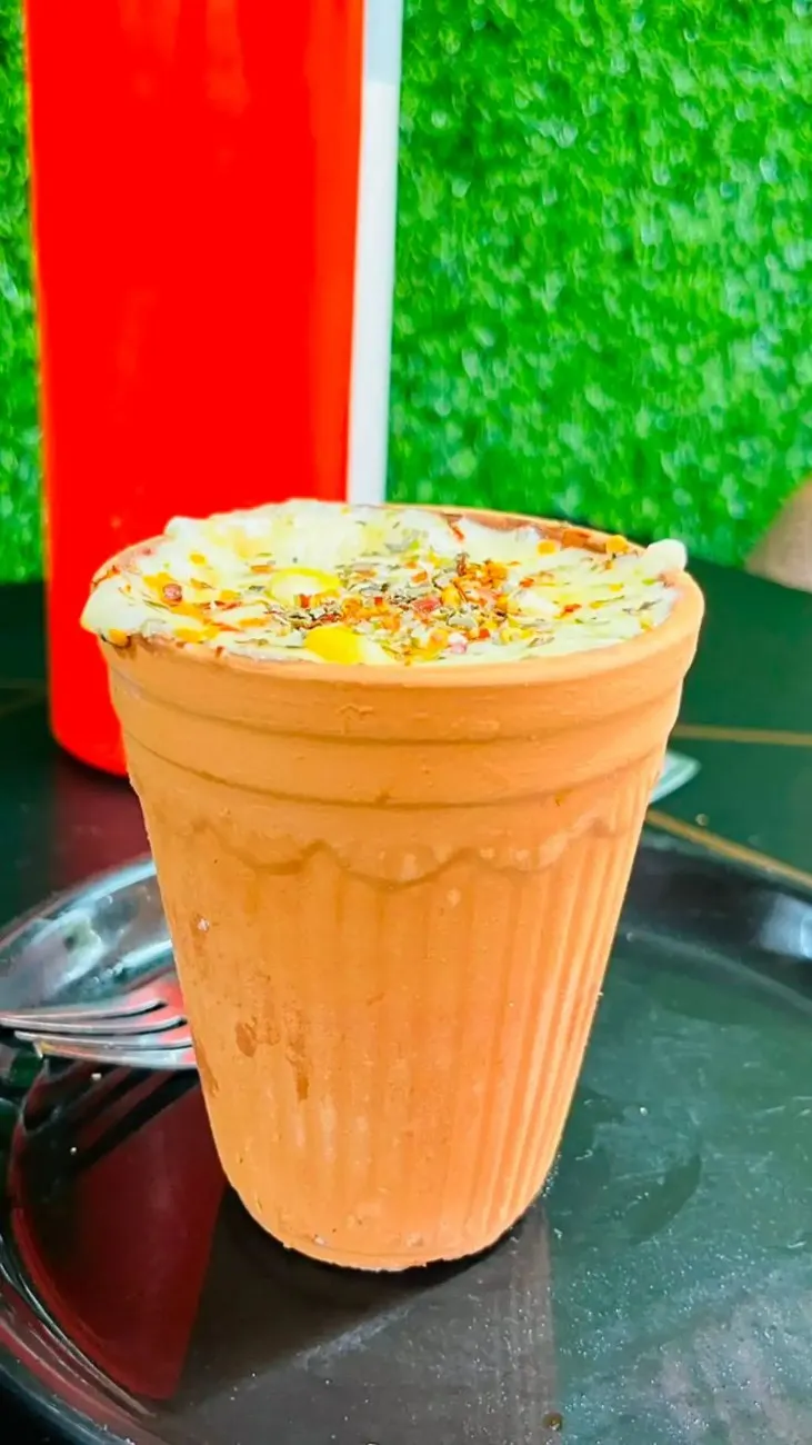 Hot and saucy veg momos served in a traditional kullad for desi street vibes.