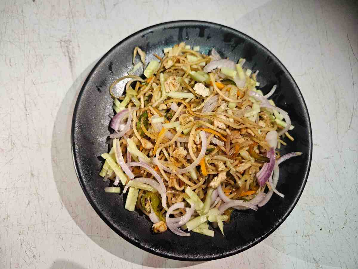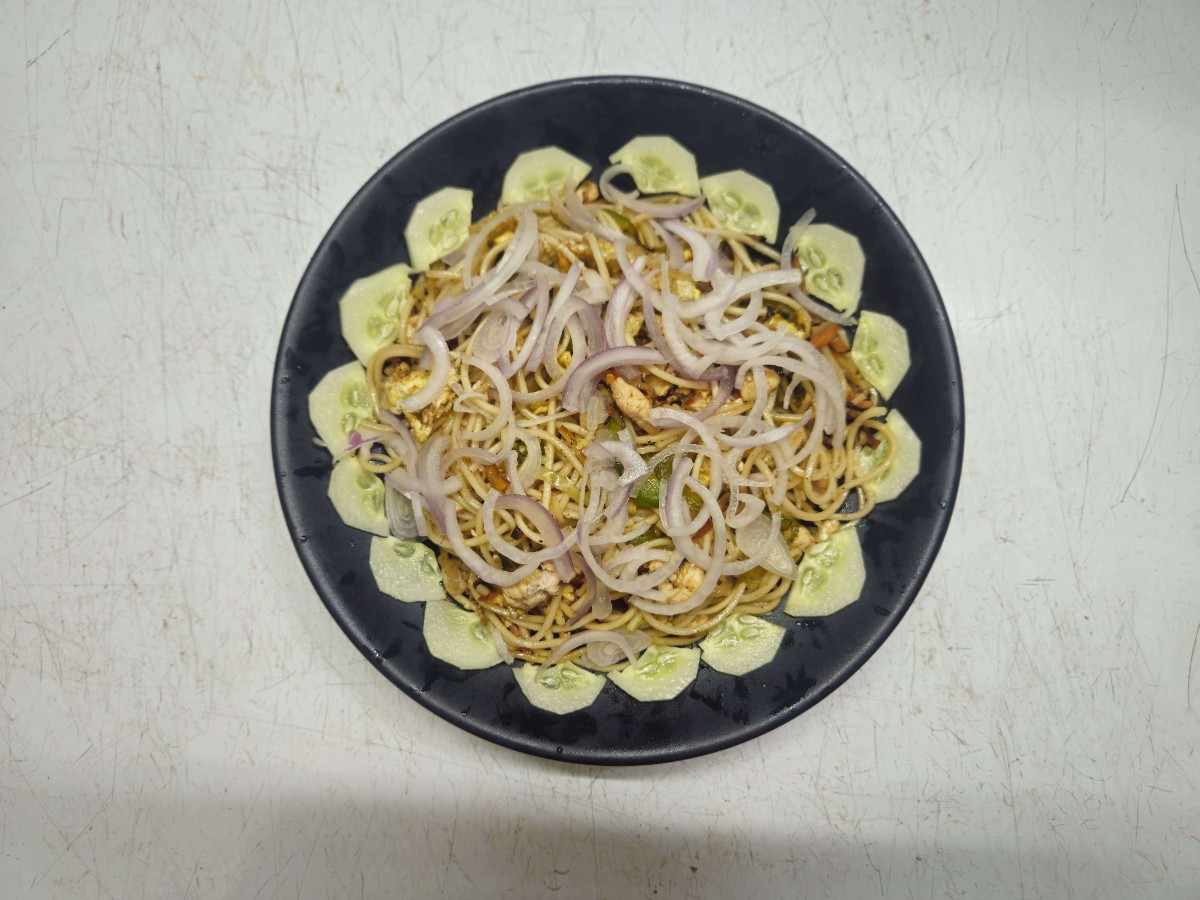 Juicy chicken tossed with wok-fried noodles and bold Indo-Chinese seasoning.