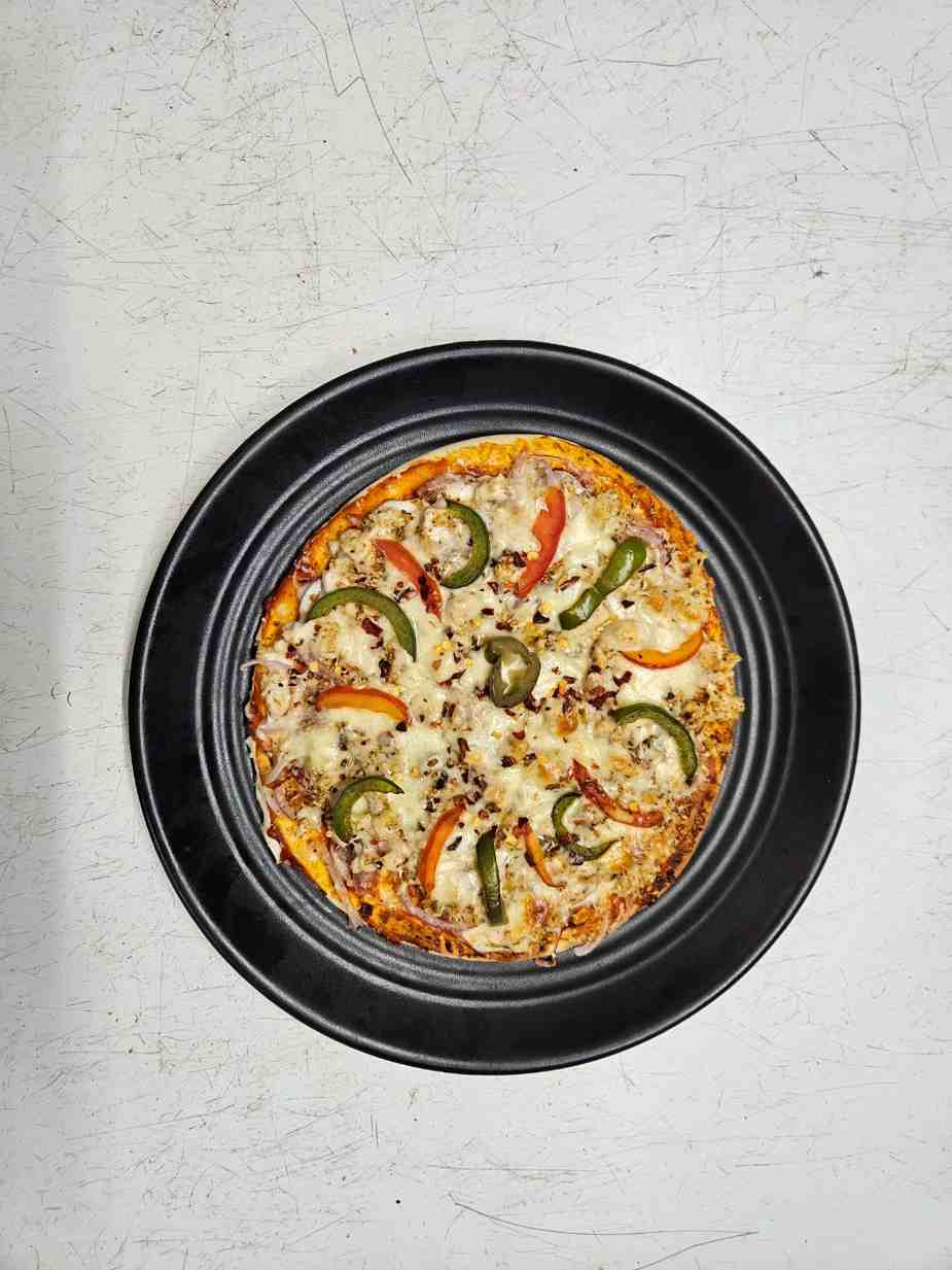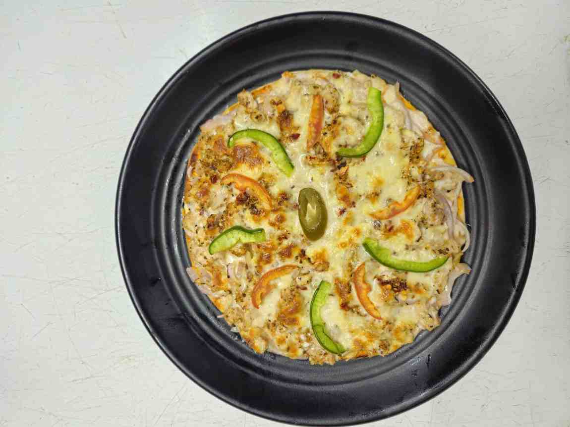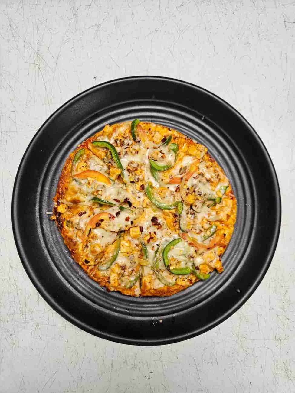 Cheesy pizza topped with creamy paneer pasta for the ultimate fusion comfort bite.